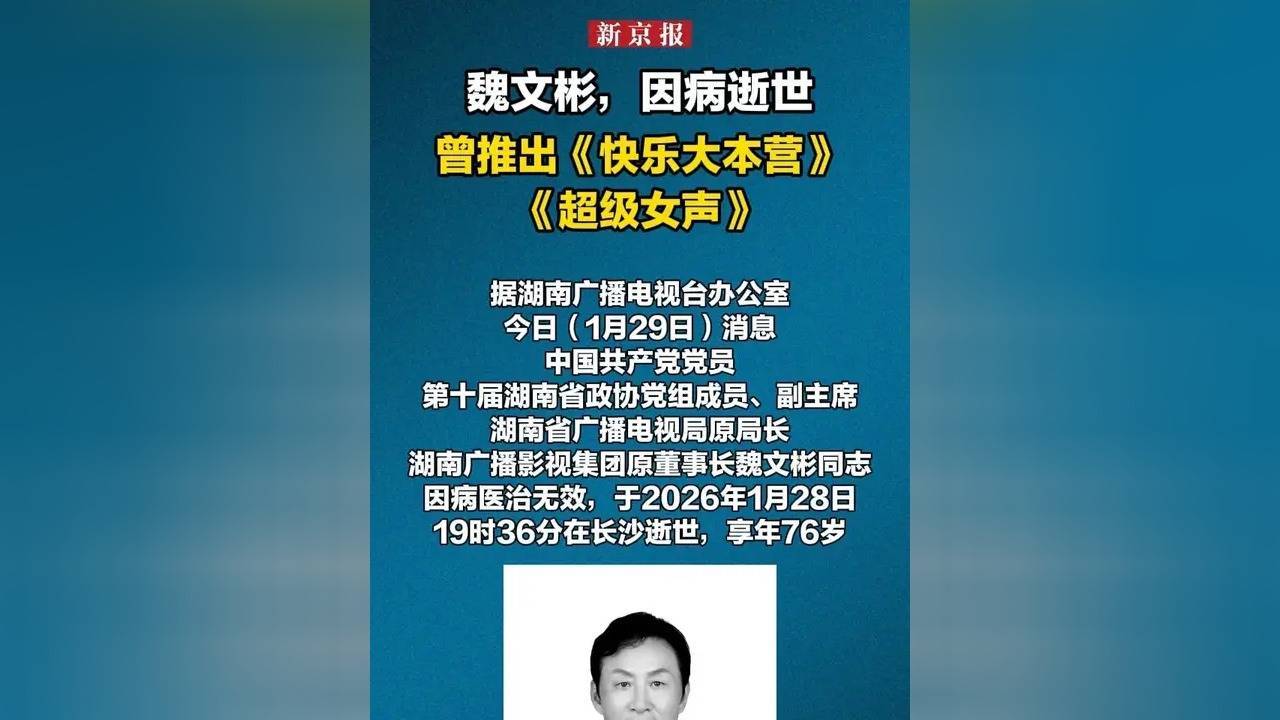 如今打开湖南卫视,《乘风破浪的姐姐》《披荆斩棘的哥哥》等节目依然延续着“快乐中国”的基因。那些年魏文彬主导的改革,像一颗种子在湖南广电的土壤里生根发芽。他提出的“导向金不换”理念,至今刻在湖南广电大楼的墙上;他推动的产业化改革,让湖南广电从一个地方台成长为年营收超百亿的传媒集团。当讣告发布后,汪涵在朋友圈写道:“魏局长教会我们,电视人既要仰望星空,也要脚踩泥土。”这句评价,或许是对这位“电视湘军”灵魂人物最好的注解。
