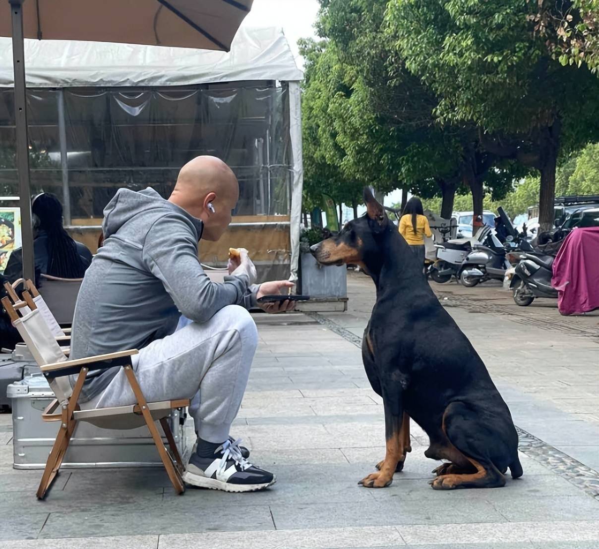 在他眼中,小刀不只是宠物,更是沉默的知己、忠诚的战友。不少路人曾在古城小巷、湿地栈道或清晨菜市场门口,撞见他牵着小刀缓步而行。