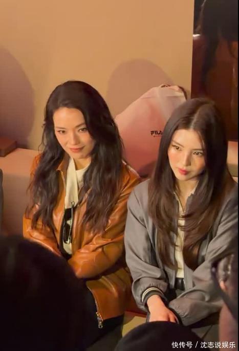 这也引出了当天秀场的另一大高潮——舒淇与韩国当红女神韩韶禧的梦幻同框。32岁的韩韶禧以静谧优雅的气质取胜,而舒淇则展现出截然不同的灵动面貌。拍照时,她俏皮地轻轻拉低墨镜,露出镜片后那双依旧清澈明亮的眼眸,瞬间点亮全场,玩心十足的模样显得格外亲切可爱。两人并肩而坐,“铅笔腿”较量成为画面中最养眼的风景线。一动一静,一飒一雅,相差17岁的两位东方女星,并非简单的“比美”,而是共同演绎了属于不同年龄段的独特魅力与自信风采。她们的同框,如同一次精彩的代际对话,为FILA秀场注入了超高的话题热度,也让现场的摄影镜头几乎未曾停歇,争相记录下这难得一见的精彩瞬间。
