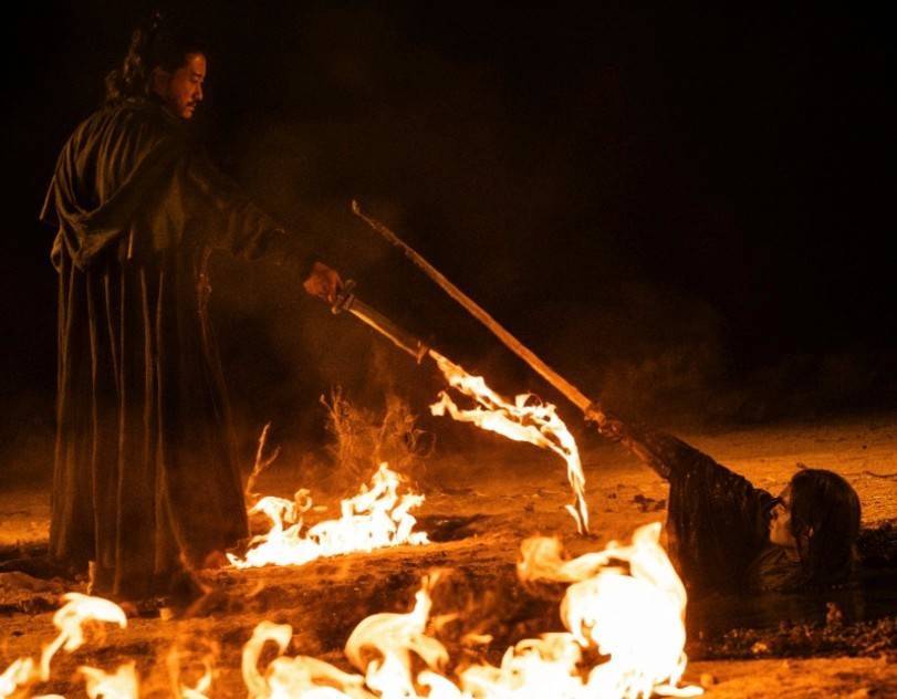这样的诚意再加上袁和平的动作设计,回归最原始的拳脚、兵器、近身搏斗,电影里角色之间的每一次碰撞都有力度,每一场打戏都有呼吸感,看得人紧张又过瘾。